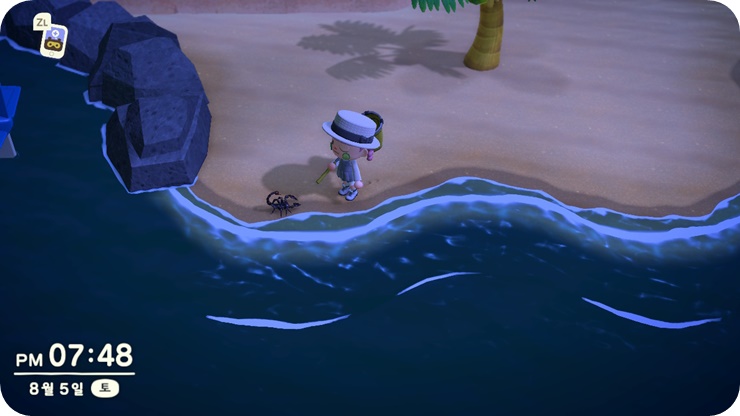 그 점을 노려서 전갈섬에 갔을 때에 잠자리채를 들지 않은채 인근까지 접근했다가, 잠자리채로 바꿔들고 공략했어요.